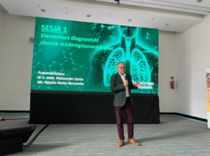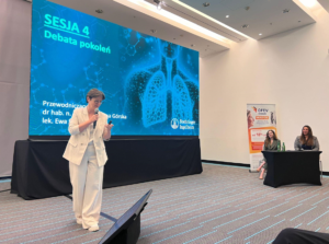 Trzecia sesja, zatytułowana „Varia” skonfrontowała nas z trudnymi sytuacjami klinicznymi. Lek. Fryderyk Zawadzki zmierzył się z tematem zapalenia płuc u chorych leczonych immunosupresyjnie, a prof. Katarzyna Górska w kompleksowy sposób omówiła polekowe zmiany śródmiąższowe płuc. Duże zainteresowanie wzbudziło również wystąpienie prof. Natalii Budy, która to – w sposób niezwykle praktyczny – zaprezentowała zastosowanie ultrasonografii w diagnostyce ILD.