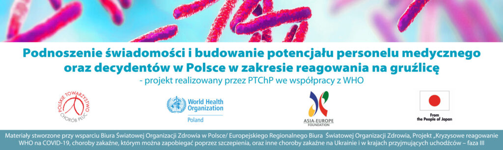 16 sierpnia br., przy wsparciu Biura Światowej Organizacji Zdrowia w Polsce/ Europejskiego Regionalnego Biura WHO, Polskie Towarzystwo Chorób Płuc rozpoczęło realizację projektu „Podnoszenie świadomości i budowanie potencjału personelu medycznego oraz decydentów w Polsce w zakresie reagowania na gruźlicę”.